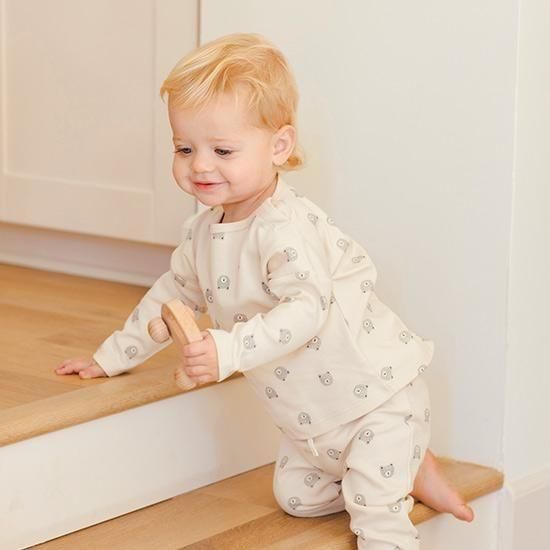 柔らかなオーガニック起毛コットンを使用したロングスリーブTシャツは、一日中快適な着心地です。肩にスナップボタンが付いているので、0〜3Mサイズから18〜24Mサイズまで、着脱が簡単です。ドローストリングパンツと合わせれば、着心地の良いコーディネートが完成します。