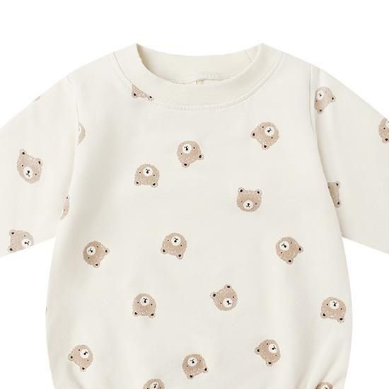 ナチュラルな色合いに、ブラウンベアのプリントが施されています。