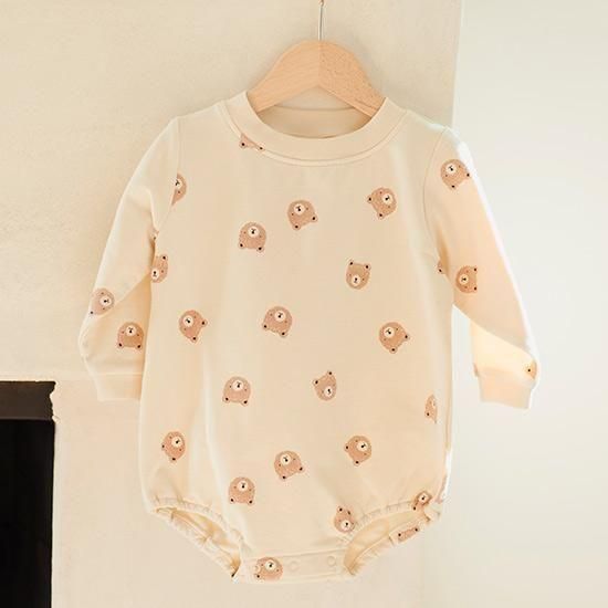 25aw CREWNECK BUBBLE ROMPER || BROWN BEAR