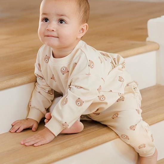 ナチュラルな色合いに「ブラウンベア」プリントを施しました。