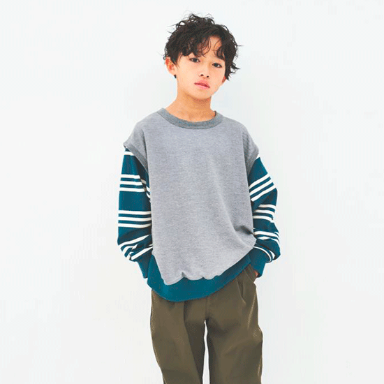 25aw 袖ボーダーバイアスニットベスト風トレーナー