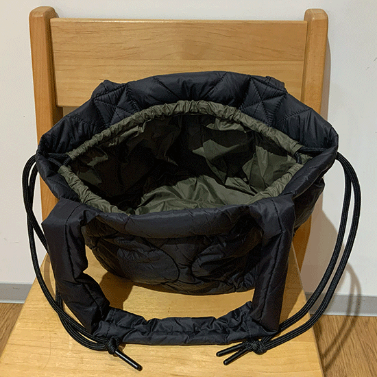 バッグ口を絞ると巾着バッグに変化し、スタイルに合わせて2WAYで楽しめます。