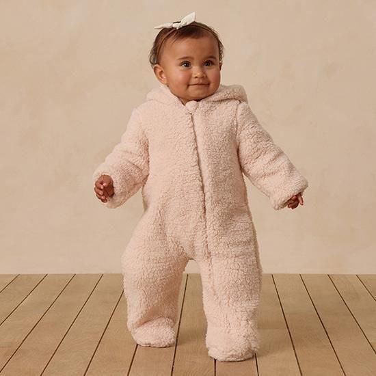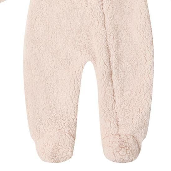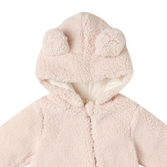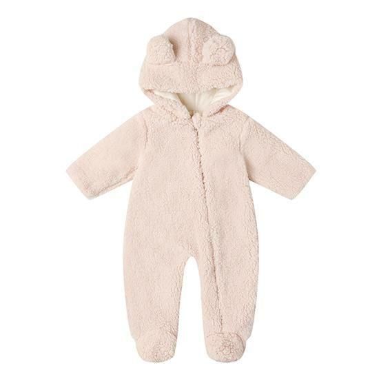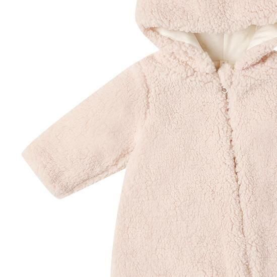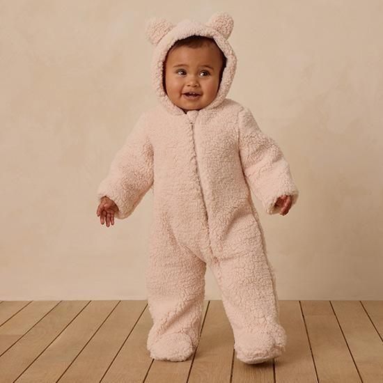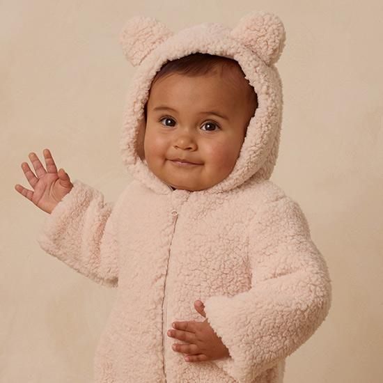 このベアジャンプスーツで、小さなお子様を暖かく快適にお過ごしください。フロントジッパーで着替えも簡単。外側はフェイクファー、内側は柔らかなジャージー素材のライナー。このジャンプスーツは、抱っこしたくなるほど心地よく仕上がっています。