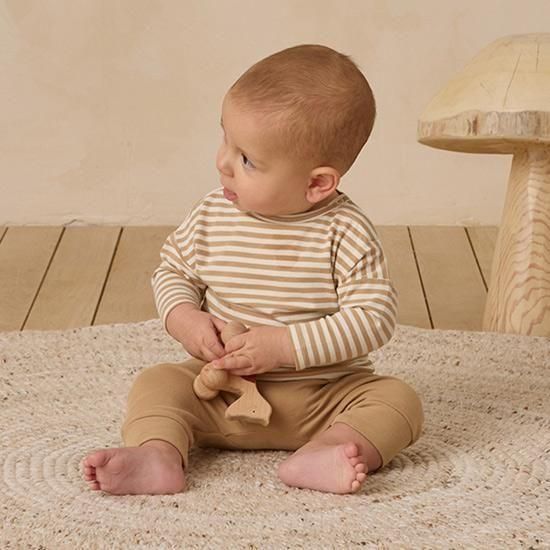 オーガニックコットンはすべて認証された上質な素材のみを使用し、落ち着きと柔らかみのある配色、ミニマルにこだわったデザインとベロアのように肌触りのよい質感を追求しています。