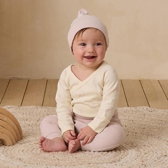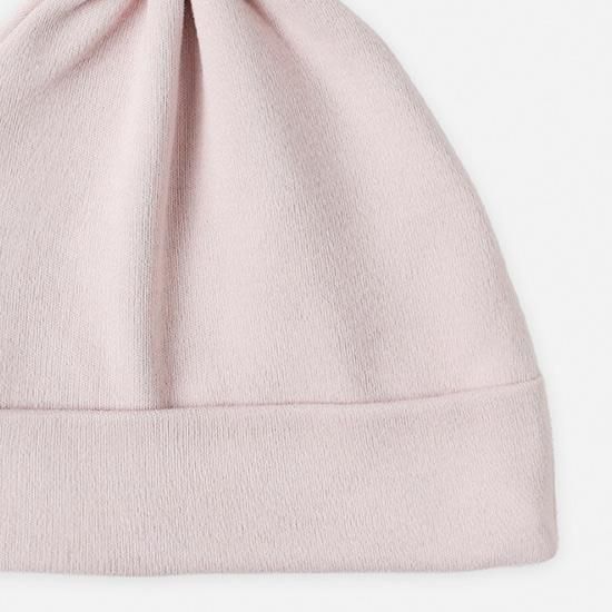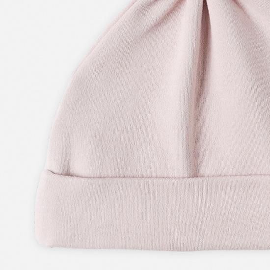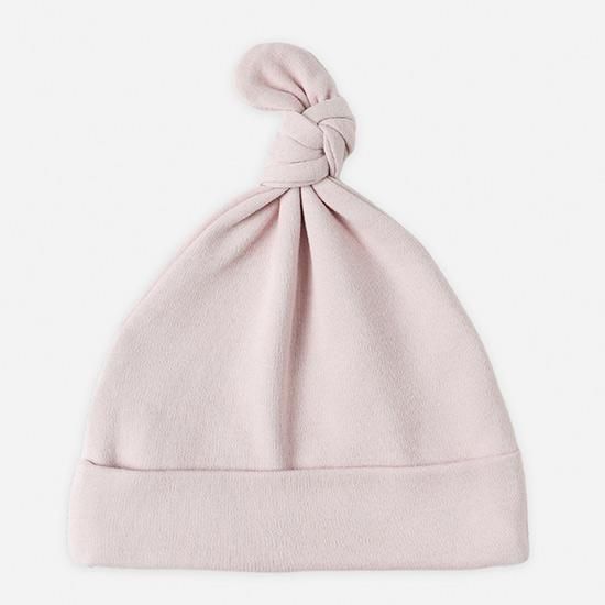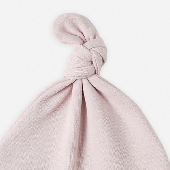 柔らかく伸縮性のある起毛ジャージー素材を使用した、心地よいフィット感の結び目付きベビーハットです。