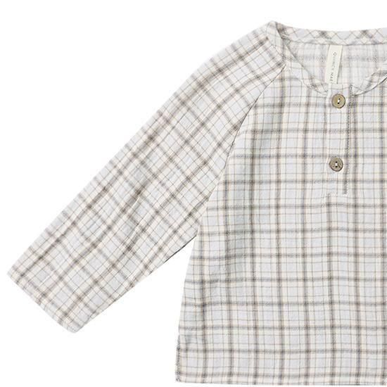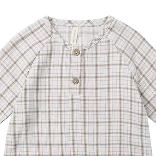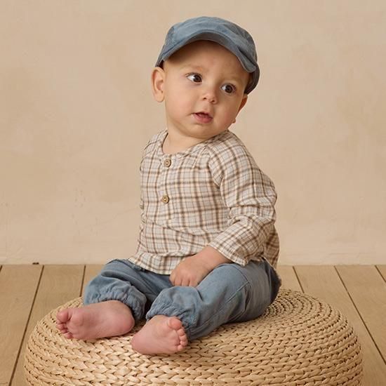 柔らかなコットンガーゼを使用したザイオンシャツは、ボックスフィット、長袖、そしてボタンフロントで着脱が簡単です。ウーブンパンツと合わせれば、コーディネートされた粋なスタイルが完成します。