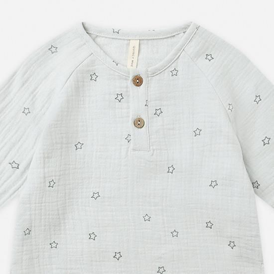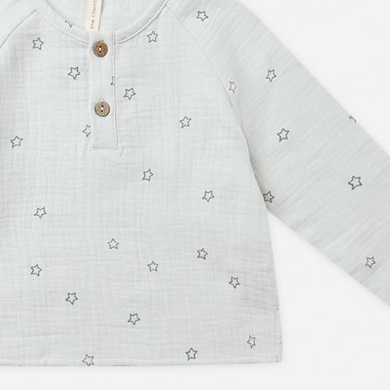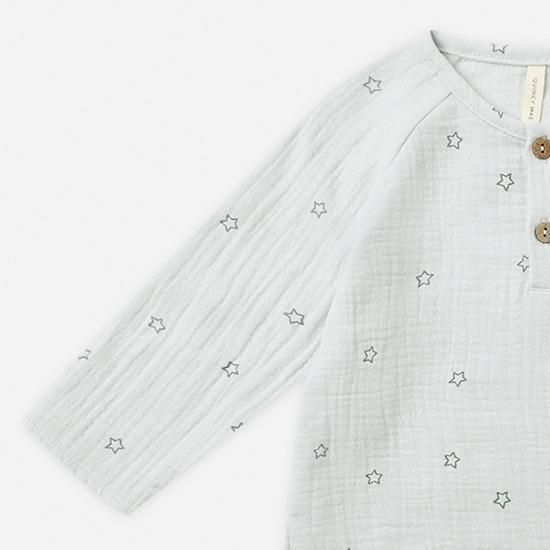 柔らかなコットンガーゼを使用したザイオンシャツは、ボックスフィット、長袖、そしてボタンフロントで着脱が簡単です。ウーブンパンツと合わせれば、コーディネートされた粋なスタイルが完成します。