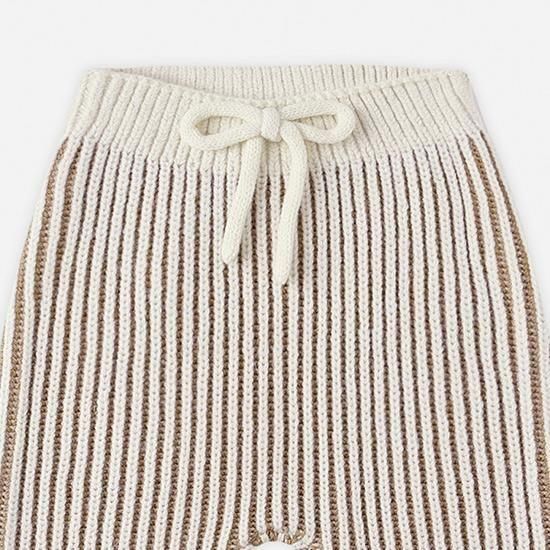 コントラストのあるリブ編みとフロントの固定タイディテールが特徴のチャンキーニットパンツ。リラックスニットセーターとの相性も抜群です。