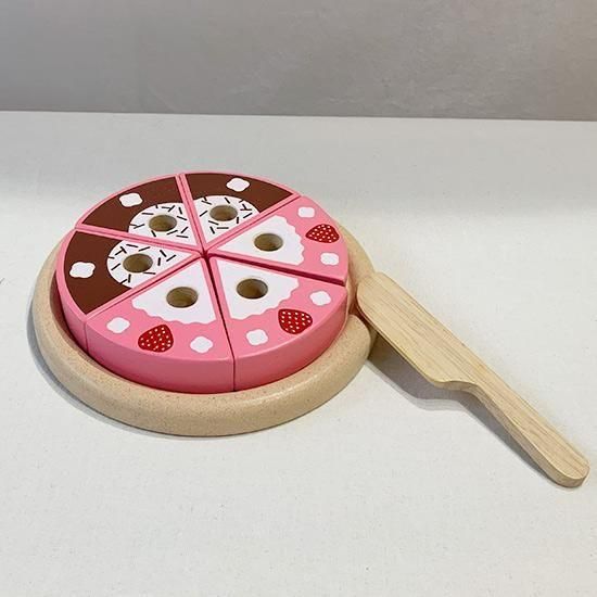 このケーキセットは、両面仕様で、プレート、ナイフ、チョコレートバー、そして取り外し可能な6本のろうそくがついています。ケーキは6個にカットでき、チョコレートバーにはチョークで名前を書くこともできます。想像力を養う遊びや分割の概念を学びのに最適です