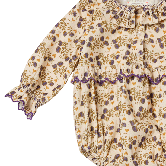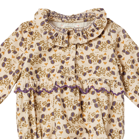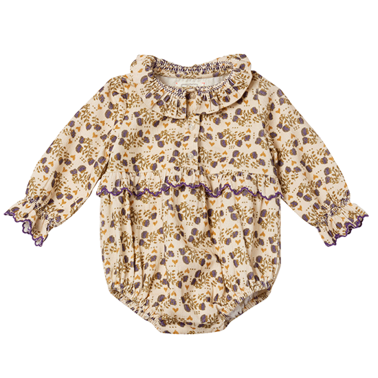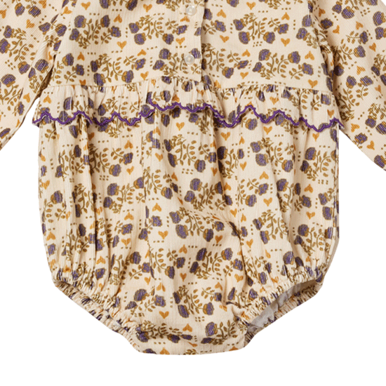 花柄ベロア素材のベビーロンパース。